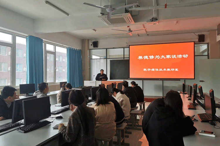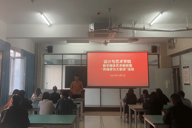 数字媒体艺术教研室主任魏铭,结合自身多年的教学经验,谈了自己对养德修为工程工作的认识,要以身作则,全身心投入教学、潜心教书育人,实现与员工共生共长。