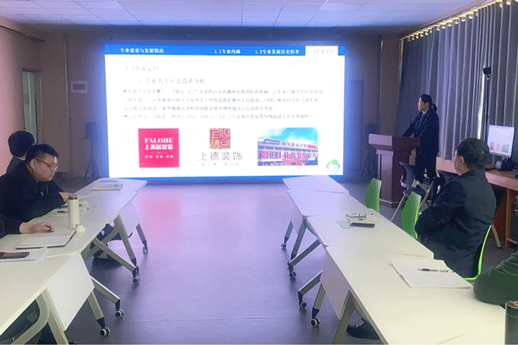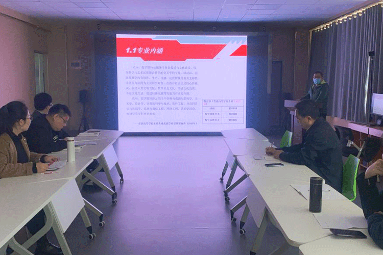 数字媒体艺术、环境设计、产品设计3个专业负责人相继对所负责专业进行专业剖析。副经理李海龙、教学经理助理李清、教学科长闫艺康和数字媒体技术专业负责人张进,进行点评指导。