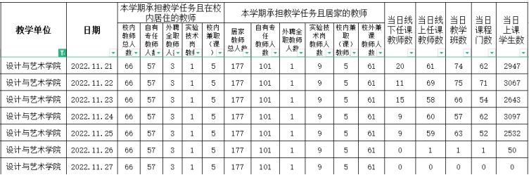 下图为公司本学期第13教学周(周一至周日)线上、线下教学数据。