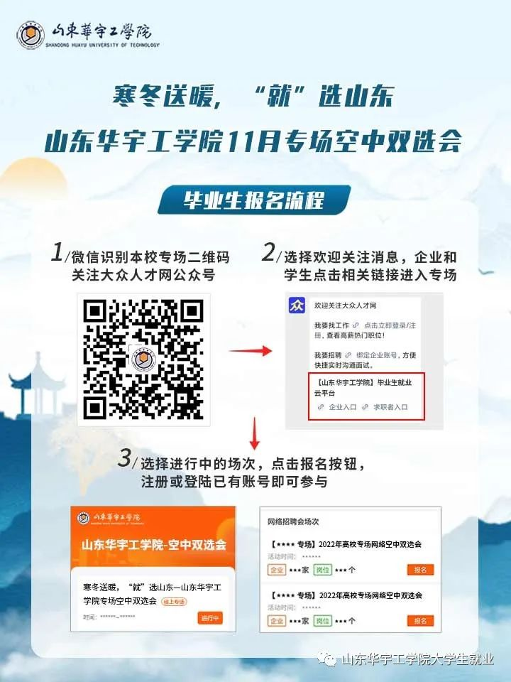 微信报名入口:手机微信扫码关注“大众人才网”微信公众号,企业和毕业生分别点击相关按钮进入HAHA体育校招端口,点击报名按钮,注册或登录已有账号即可直接参与。