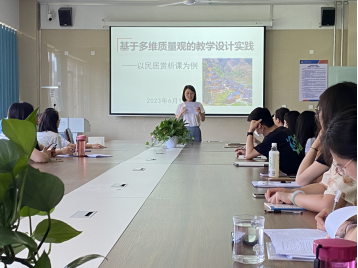 王磊教授先从国家政策角度出发,介绍了国家出台的有关教育领域的政策。然后从不同公司发展情况来介绍何为多维教育观,帮助年轻老师了解多维质量观的教育观念。最后,王磊教授结合《民居赏析》课程直观地向老师们展示了基于多维质量观的课程教学设计。