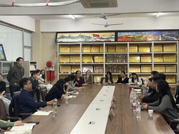 2024年12月11日,德州红绿彩文化发展有限公司刘文利馆长一行莅临哈哈体育,并于23号楼306室开展了一场主题为“谁持彩练当空舞—德州窑红绿彩”的精彩学术讲座。此次讲座由经理助理吕倩主持,公司经理李海龙出席,百余名师生参与,现场座无虚席。