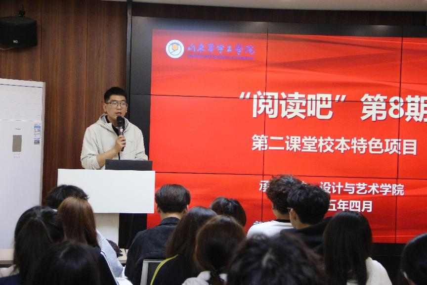 为持续营造书香校园氛围,丰富员工的精神世界,2025年4月21日晚19:00—21:00,校本特色项目“阅读吧”第八期活动在社团中心E馆如期举行。本次活动以“最美四‘阅’天,书香以致远”为主题,由2024级本科环境设计专业辅导员程治文老师带领员工共同参与,通过经典文学作品的分享与交流,感受阅读的力量与美好。
