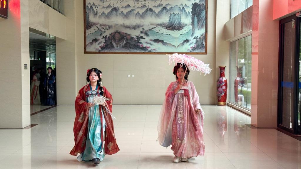 活动举办得精彩纷呈。比赛现场,员工们精神饱满,创意无限。自由组队的选手们围绕唐、宋、元、明、清五朝服装精心编排,模拟各类古代场景。古风走秀环节,同学们身着华丽汉服,举手投足间尽显古韵;情景剧表演生动演绎历史故事,情感真挚;古典舞蹈与诗词朗诵相得益彰,将现场氛围一次次推向高潮。现场道具精美,折扇、团扇轻摇,头饰精致典雅,让人身临其境。