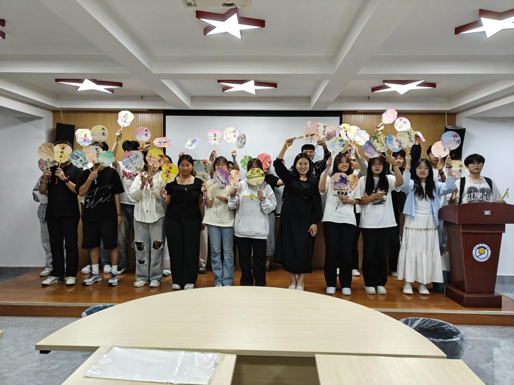 活动开始,李艳艳老师详细介绍了非遗漆扇悠久的历史背景与深厚的文化内涵,让同学们对这一传统技艺有了更深入的认识。在制作环节,李老师现场演示漆扇制作的步骤与技巧,从构图设计到色彩调配,从漆艺绘制到最后的扇面修饰,每一步都讲解得细致入微。同学们认真聆听、仔细观察,随后迫不及待地动手实践。